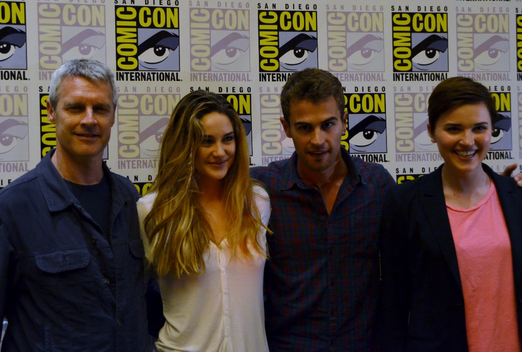 Divergent-leffan tarina sijoittuu tulevaisuuden Chicagoon. Joka vuosi 16-vuotiaat nuoret jaotellaan viiteen kategoriaan heidän luonteenpiirteidensä mukaan; epäitsekkäisiin, rauhallisiin, rehellisiin, urheisiin ja älykkäisiin. Elokuvan päähenkilö, Tris, on erilainen, sillä hän sopii kolmeen eri kategoriaan. Kun hänen salaisuutensa paljastuu, on hän kuolemanvaarassa. Kuvassa pätkän ohjaaja, Neil Burger, pääosan esittäjät Shailene Woodley ja Theo James sekä Divergent-romaanin kirjoittanut Veronica Roth. Leffan ensi-ilta on ensi keväänä.